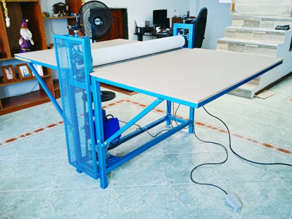 La máquina con transmisión por cadena ofrece mayor fuerza y resistencia, permitiendo operar con materiales más gruesos o de mayor densidad. Su sistema de arrastre asegura un movimiento constante y firme, optimizando la velocidad de producción. Dispone de manivelas en cada lado para ajustar la presión del rodillo superior según el material a trabajar. También cuenta con mesas plegables que facilitan su almacenamiento cuando no está en uso. El control manual y por pedales permite una operación más ágil y productiva, ideal para entornos industriales de alto rendimiento.
